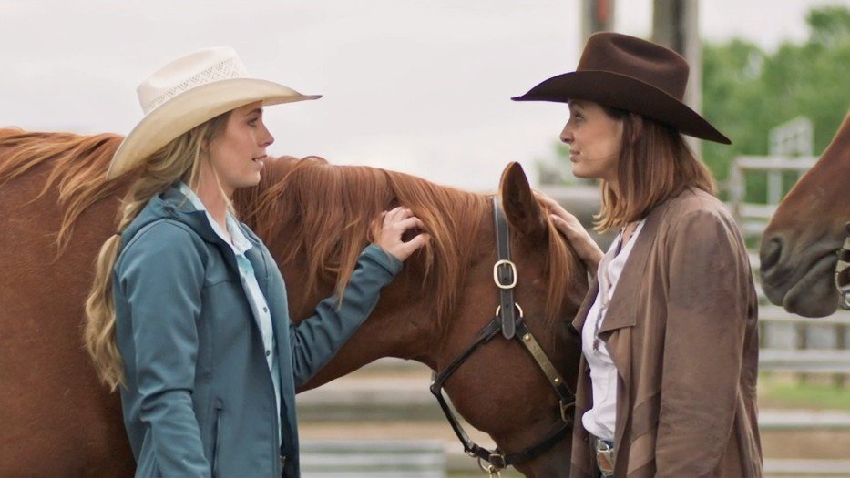 Amber Marshall as Amy and Jennifer Gibson as Cheryl on Heartland season 19 episode 6